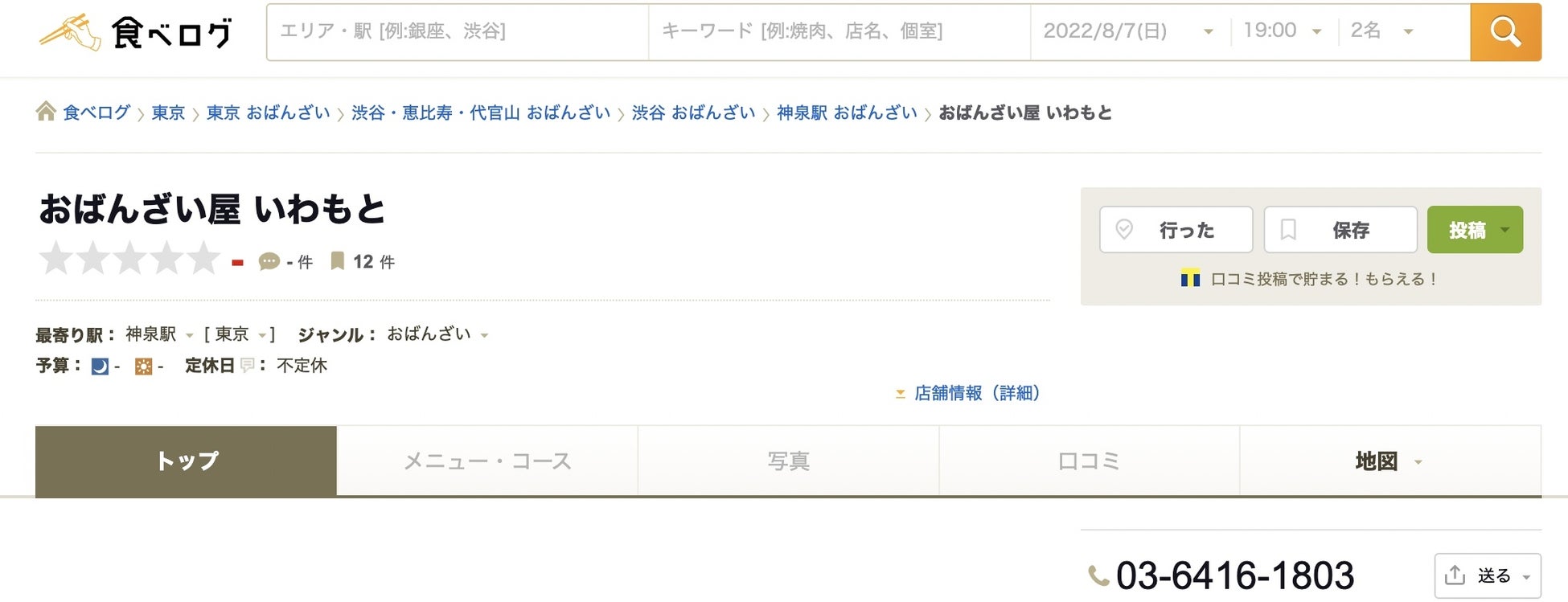 ■渋谷のおばんざい「いわもと」の予約方法・お問合せ
