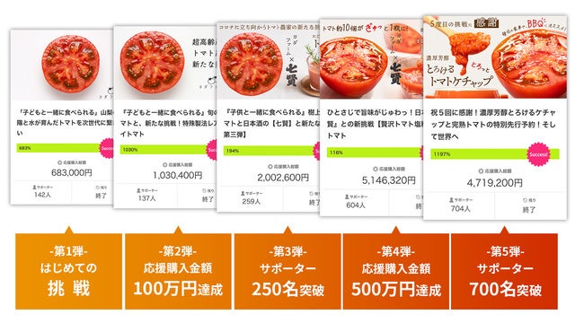 まずはこの商品を幅広く支援して頂き、市場に出回らない本当は美味しいトマトの魅力を伝えたい。そして、こうした加工品づくりに挑むことが、農業自体の持続可能性に繋がり、衰退してしまった農業復興の一助となることを示したい。