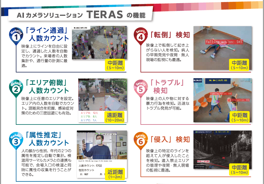 無線機やカメラシステムの販売・サブスクリプション事業を展開する株式会社オンザウェイ(本社・東京都町田市、代表取締役:野中元樹)は、AI技術を活用して、大規模な公園やイベント会場で入場者の数を正確にカウントしたり属性を推定したりできるAIカメラソリューション「TERAS(テラス)」をリリースし、1月より本格サービスを開始しました。