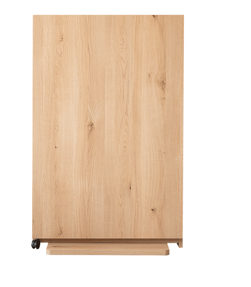扉を手前に引いてデスク天板を下せば、PCや本などを広げられる作業スペースが生まれます。使用しない時間は扉を閉めておくことで奥行20cmとなりリビングや寝室に設置しても省スペースです。