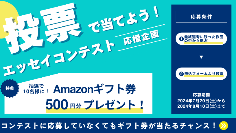 2024年7月20日(土)~2024年8月10日(土)の期間中に一般投票に参加して、「エッセイコンテスト2024」を応援しよう!