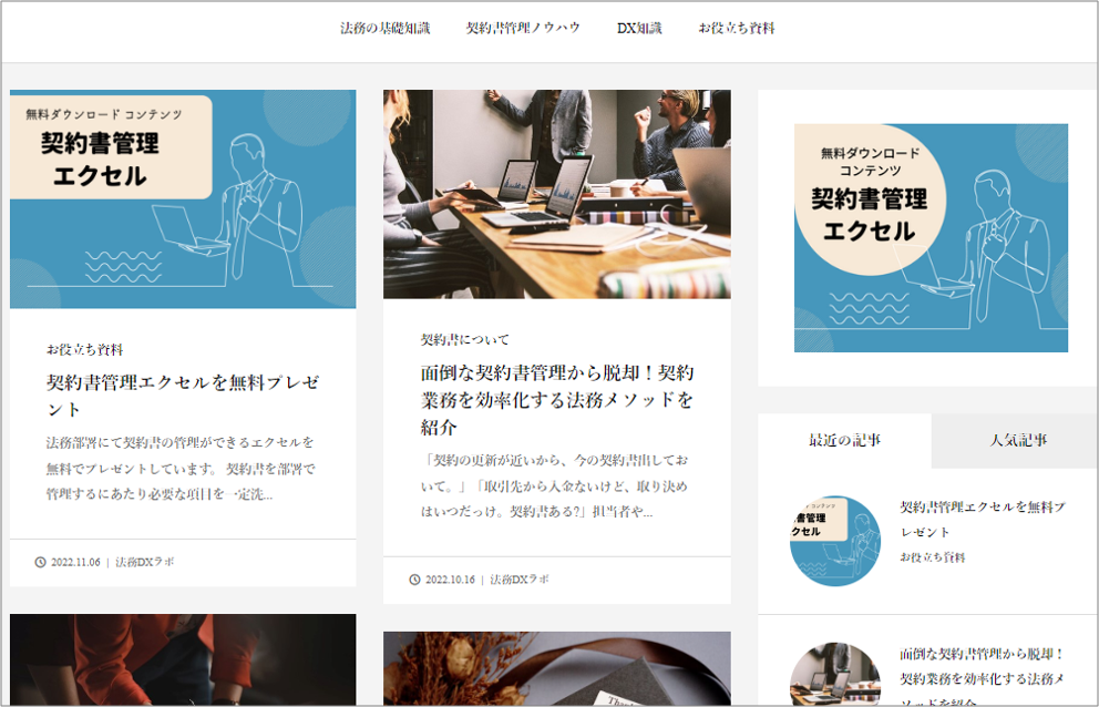 掲載している記事は、分かりやすくジャンル分けしており、リーガルテックについても幅広く取り扱っております。
