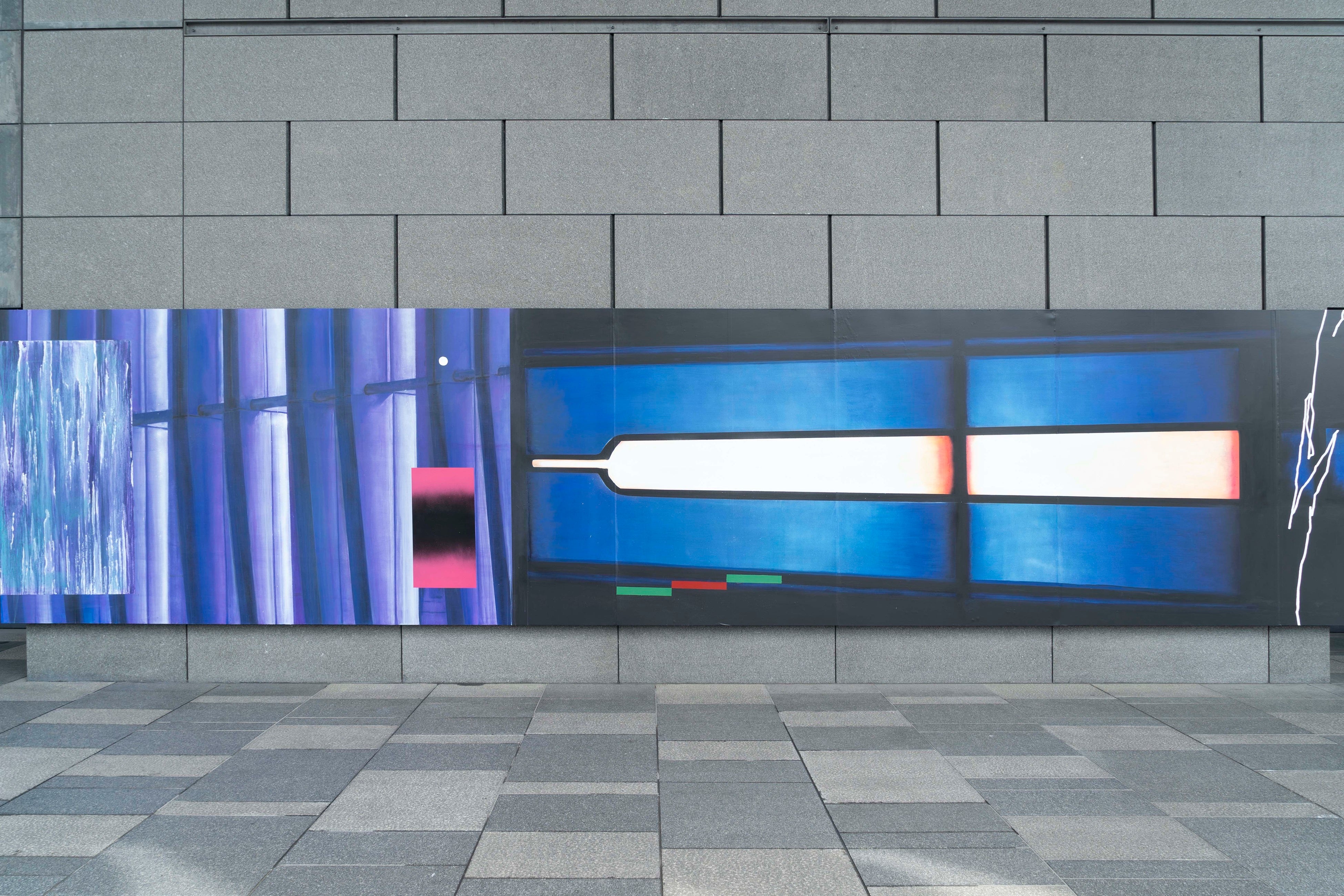 壁画制作や写真を撮ったりしていると街の中にある壁や景色を意識的に見るようなります。日常に溶け込みすぎて気付かなかった部分を発見できる事があり、そういった発見は、普通が少しスペシャルに感じる瞬間でもあるからです。様々な制限がある事が普通になっている今、日常に潜む景色の見方や、切り取り方、またそれに一手間加えてみると同じ景色も違ったものに見える楽しさがあるのではないでしょうか?そういった着想から今回はグランフロント大阪にて撮影した写真を軸に制作いたしました。
