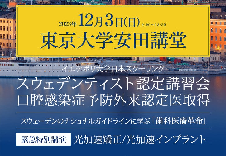 スウェーデンのナショナルガイドラインに学ぶ「歯科医療革命」、【特別講演】光技術で変わる矯正とインプラントなど、世界トップレベルの講演を開催いたします。