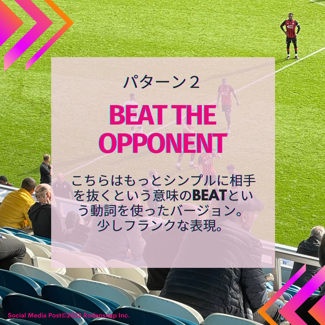 こちらはもっとシンプルに相手を抜くという意味のbeatという動詞を使ったバージョン。少しフランクな表現。