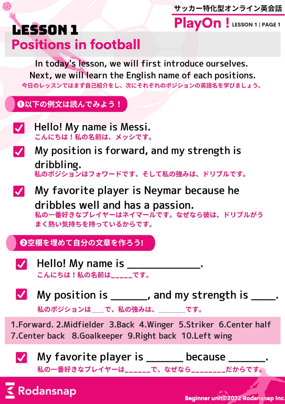 サッカーで英語を学ぶ「PlayOn! for Beginner」