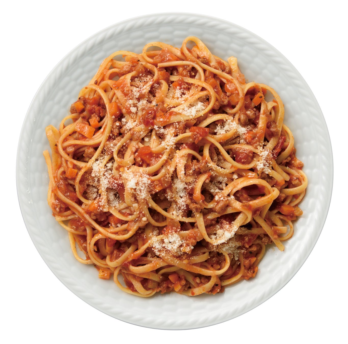 エミリア・ロマーニャ州発祥の代表的なミートソースのパスタ料理です。香味野菜やひき肉、パンチェッタを香ばしく炒め、トマトピューレと赤ワインでじっくり煮込んだボロネーゼです。食べる直前に、別添えDOP*パルメジャーノ・レッジャーノチーズをかけていただくことで、風味がさらにアップします。