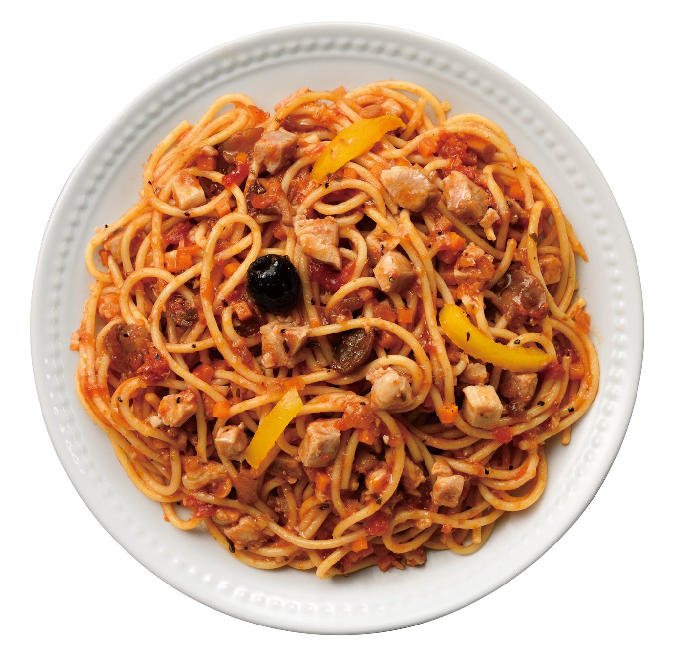 アドリア海に面したイタリア中部のアブルッツォ州発祥のパスタ料理です。ミートボールをミートソースでじっくり煮込むことでそれぞれの素材が持つうま味を引き出し、食べ応えのある一皿に仕上げました。また別添している「イタリアチーズの王様」とも呼ばれる、パルミジャーノ・レッジャーノは*DOP(原産地呼称保護)※チーズで、塩味と旨味が詰まったイタリアを代表するチーズです。パルミジャーノ・レッジャーノをかけることで、トマトソースの味と香りをさらに引き立てるだけでなく、見た目にも華やかさが加わります。