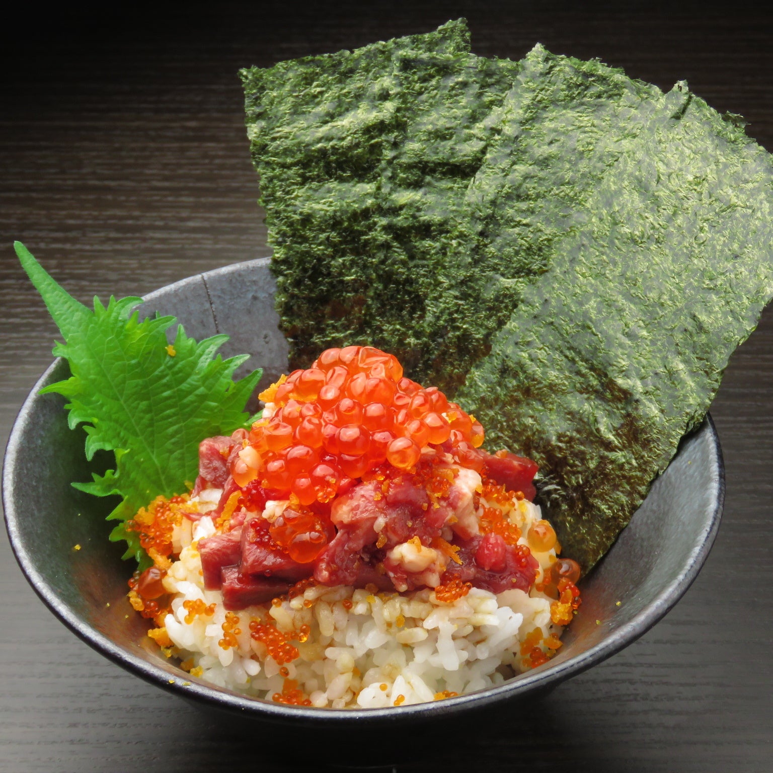 馬肉、いくら、からすみをこれでもかと盛り付けた丼、その名も「贅沢!馬肉いくら丼」です。
