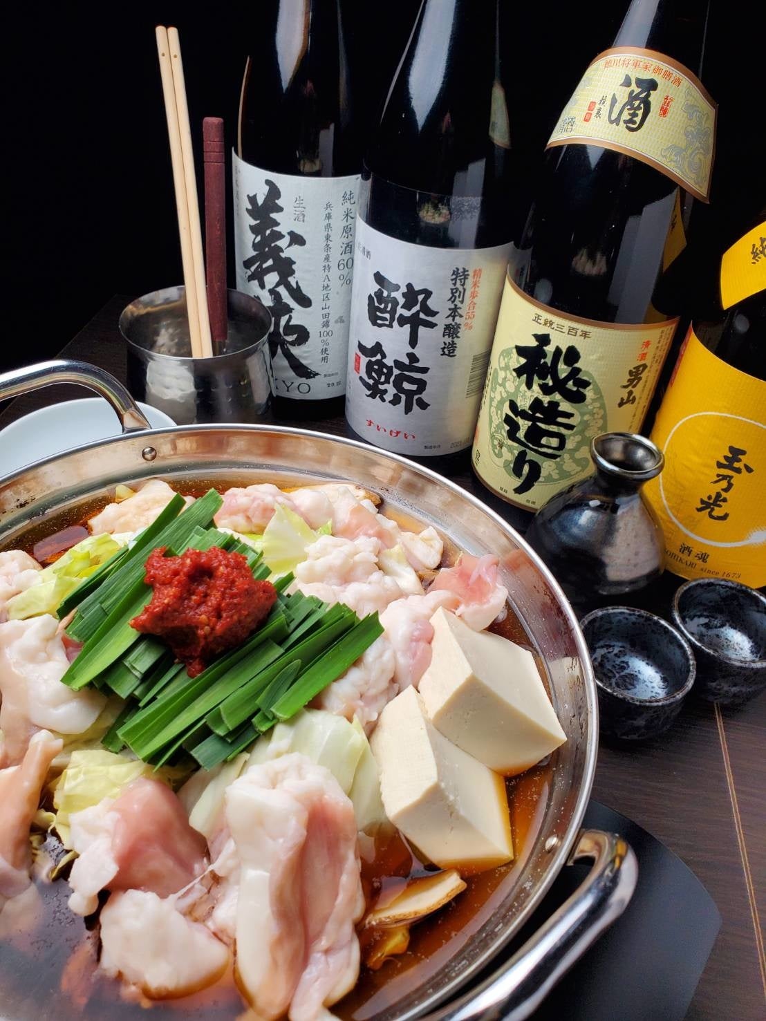 また、宮崎県といえば焼酎のイメージがあるかもしれませんが、もつ鍋にこそ日本酒があうということを知って欲しいという想いから、当店では『日本酒のペアリング』を提案させていただいております。
