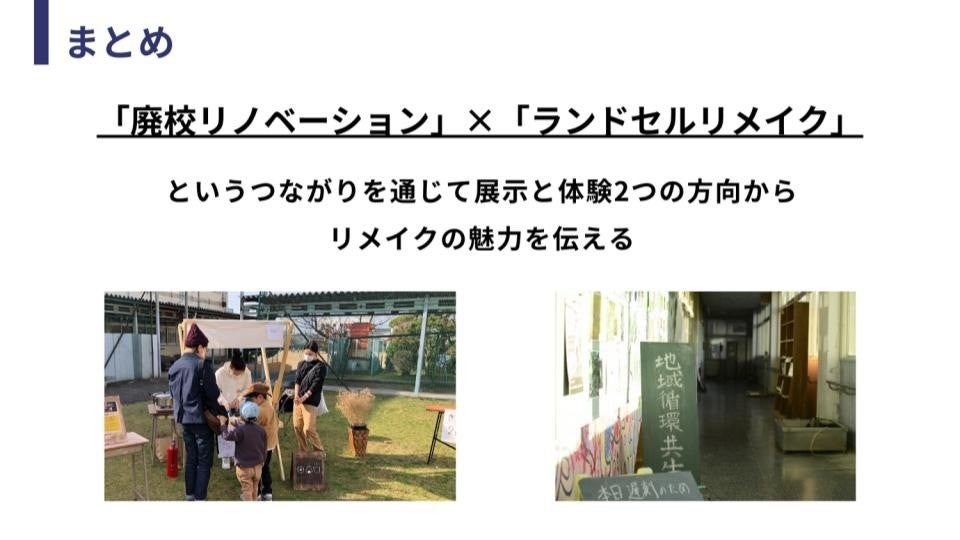 旧北高安小学校、旧高安中学校の校舎は2016年に高安小中学校に統廃合されてから、校舎の一部は八尾市教育センターになりましたが、その他の教室は使われずに残っていました。そんな、いわゆる廃校を活用した「八尾廃校SATODUKURI BASE」×廃材を活用した「壁掛けアート」を近畿大学の学生たち自ら企画・準備を行い、来場者は学生のサポートSDGsについて考えるきっかけ作りとなる活動を行っております。