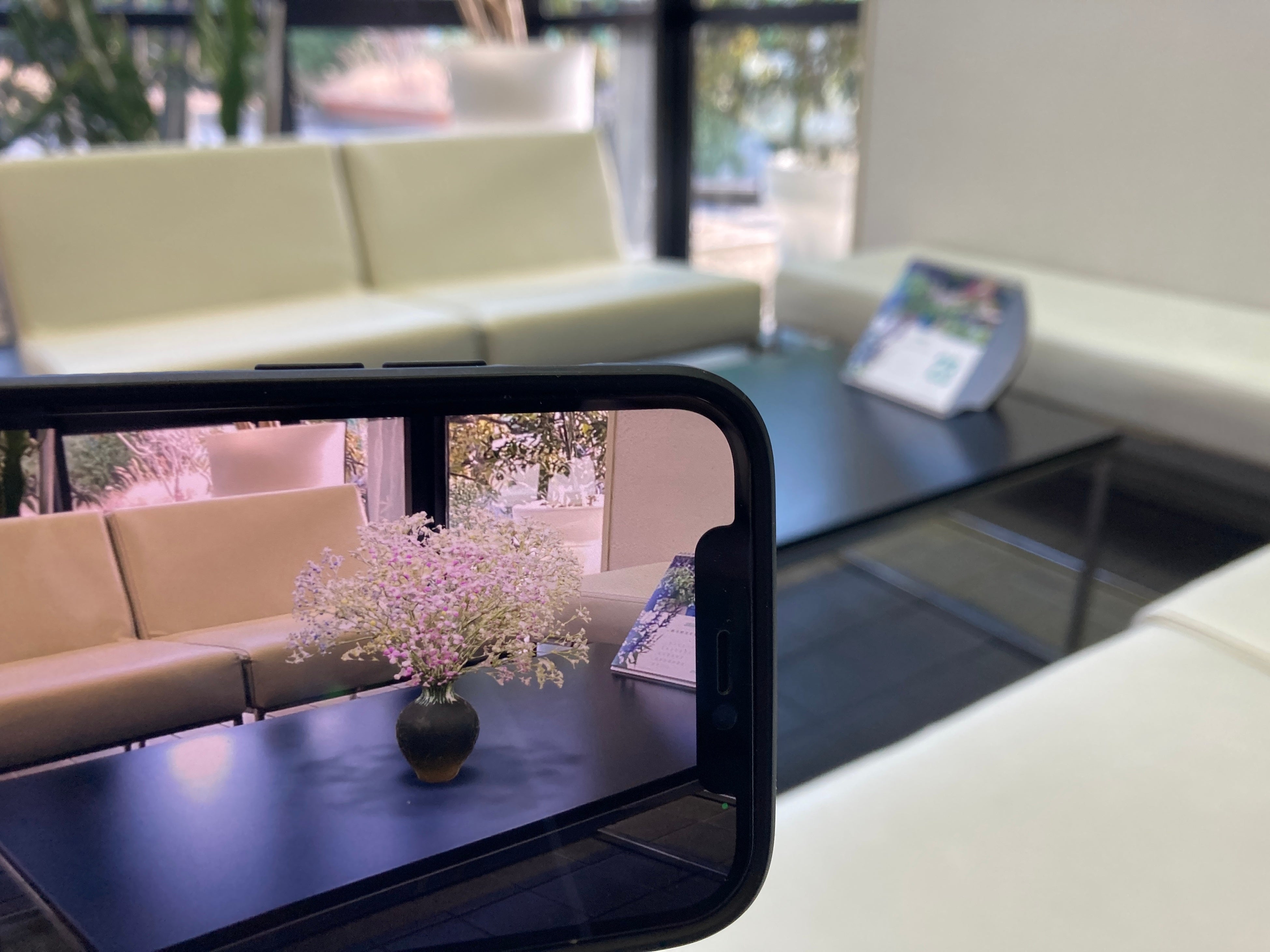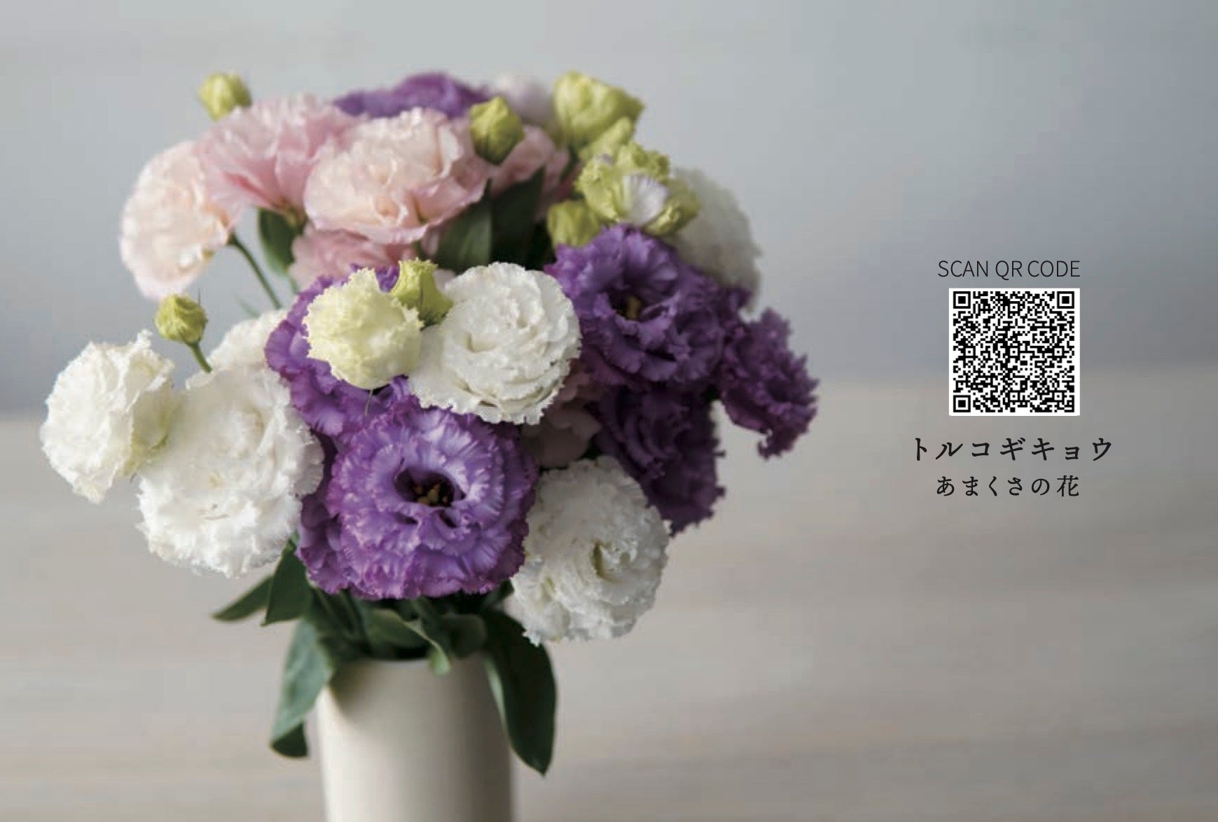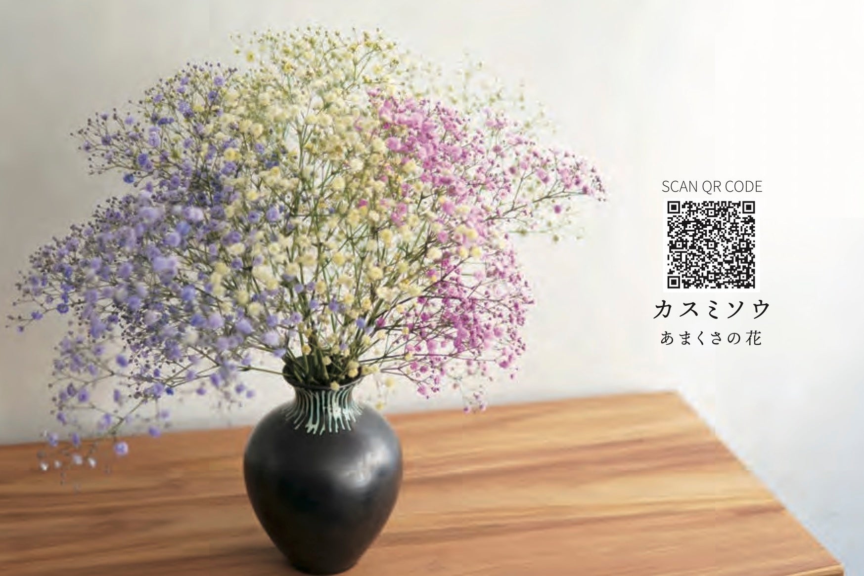 スマートフォンでQRコードをスキャンしていただくと、ARの花がポップアップしますので、自分の部屋に飾って楽しむことができます。
