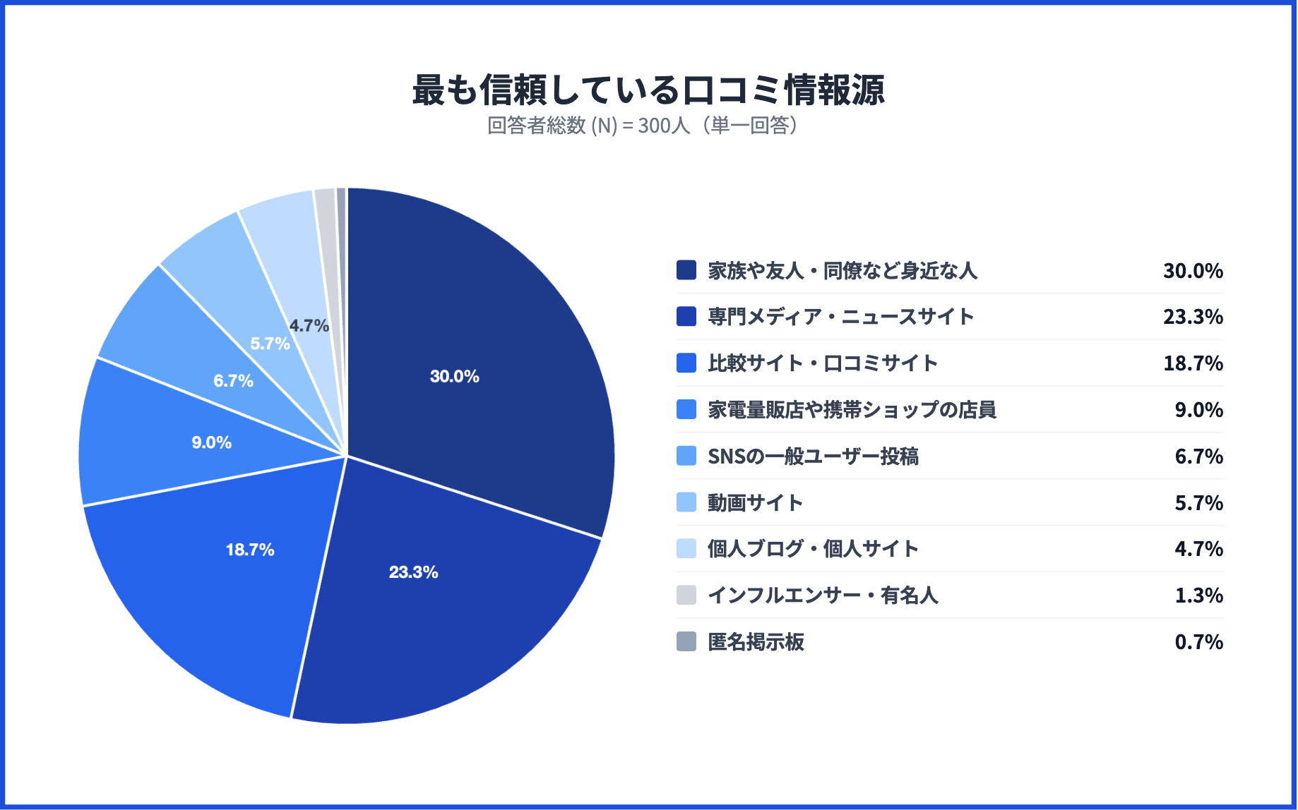 1.「最も信頼している口コミ情報源」1位は「家族や友人・同僚など身近な人」で30.0%