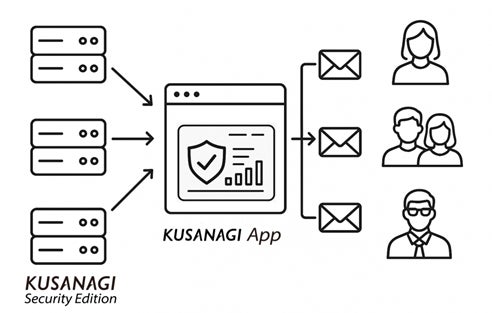 ご利用のKUSANAGI Security Editionと連携し、セキュリティ監査、自動アップデート、マルウェア検知の結果と具体的な対策をメール送信。複数のサーバで、多くの担当者、制作会社などがかかわるCMSのセキュリティ運用を効率化します。