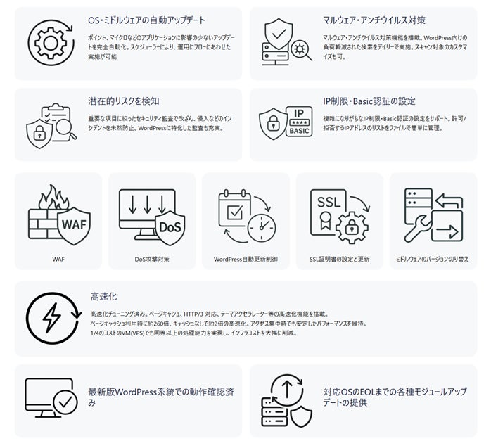 WordPressなどのCMSのセキュリティ運用に必要な機能をオールインワンで提供します。