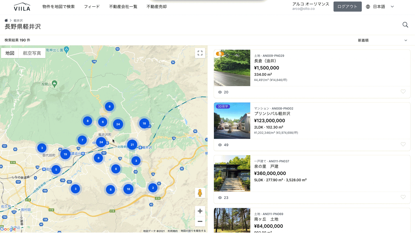 Viila地図で物件探しページ:https://viila.co/karuizawa