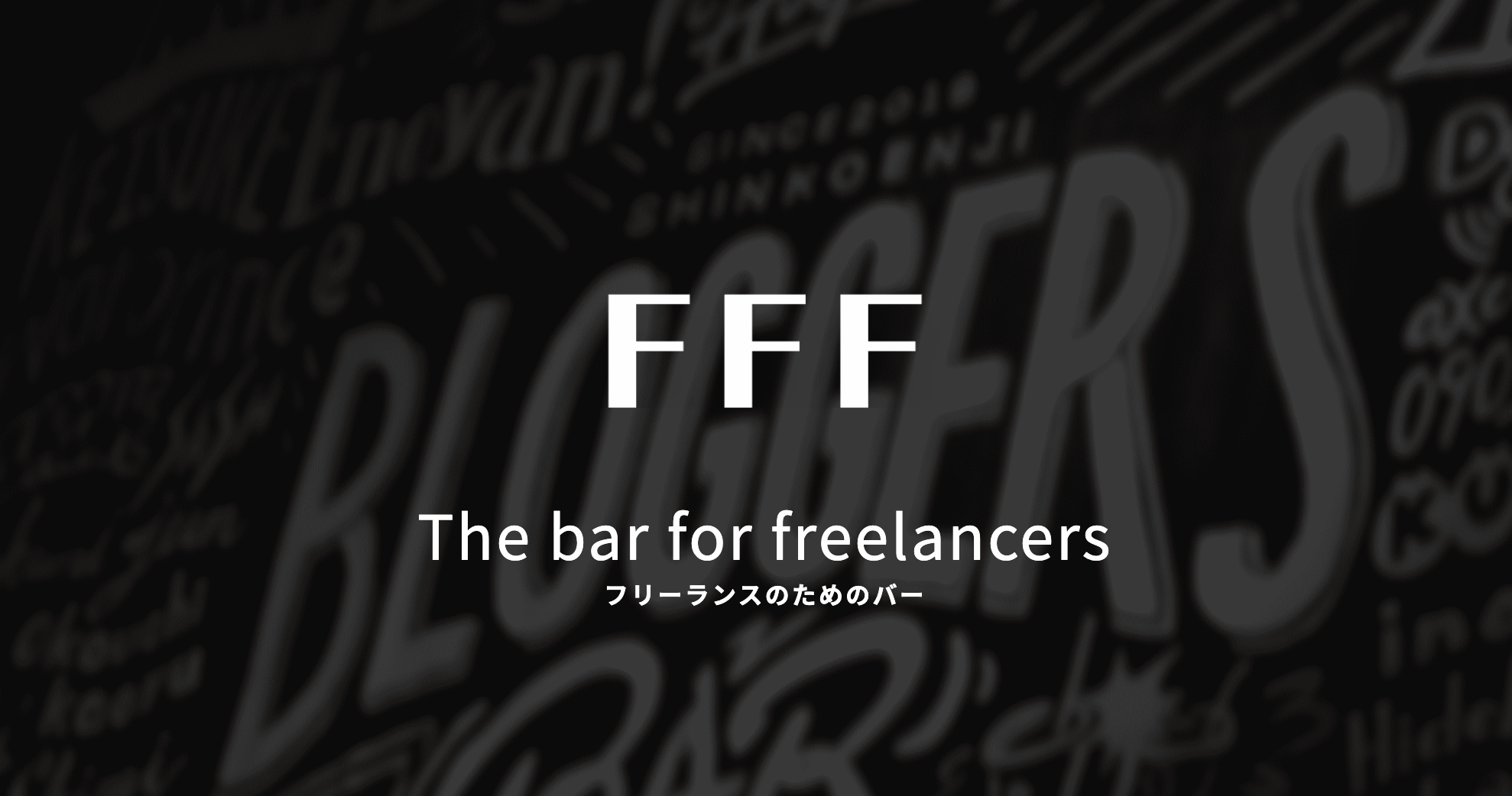 ブロバーではブロガーだけでなく、ライターやデザイナー、エンジニアなどあらゆる職種の人が集まるようになり、またフリーランスをはじめとする様々な働き方をする人がいることを踏まえ、日本で唯一のフリーランスが集まるバー「FFF」 (エフエフエフ)としてリニューアルオープンいたします。