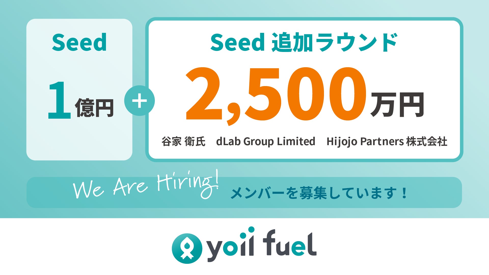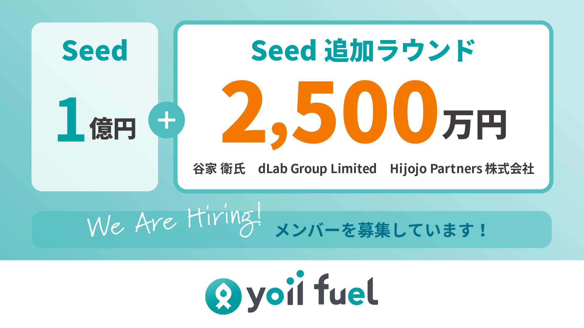 出資、融資とは異なるレベニューベースの新しい資金調達サービス「Yoii Fuel」によって、攻めの経営者を支援する株式会社Yoii(ヨイ)は、2021年のシードラウンド1億円調達のエクステンションとして下記出資者を引受先とする第三者割当増資により2,500万円の追加資金調達を実施しました。