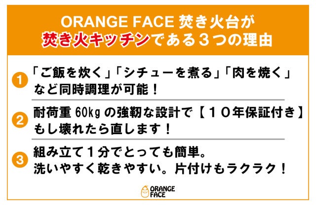 アウトドアでの本格料理を可能に!焚き火キッチン「ORANGE FACE」クラウドファンディングMakuakeにて注文受付開始