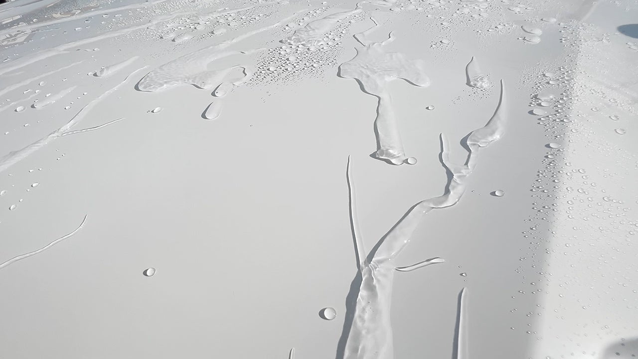 ・吹付けた瞬間から、特殊な保護剤が反応し、塗装面を保護。