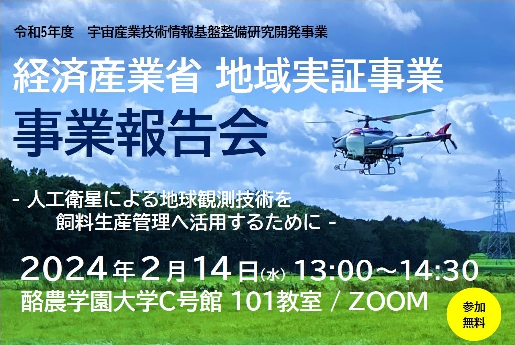 2月14日、人工衛星による地球観測技術を飼料生産管理へ活用する実証活動の報告会をハイブリッド開催致します。