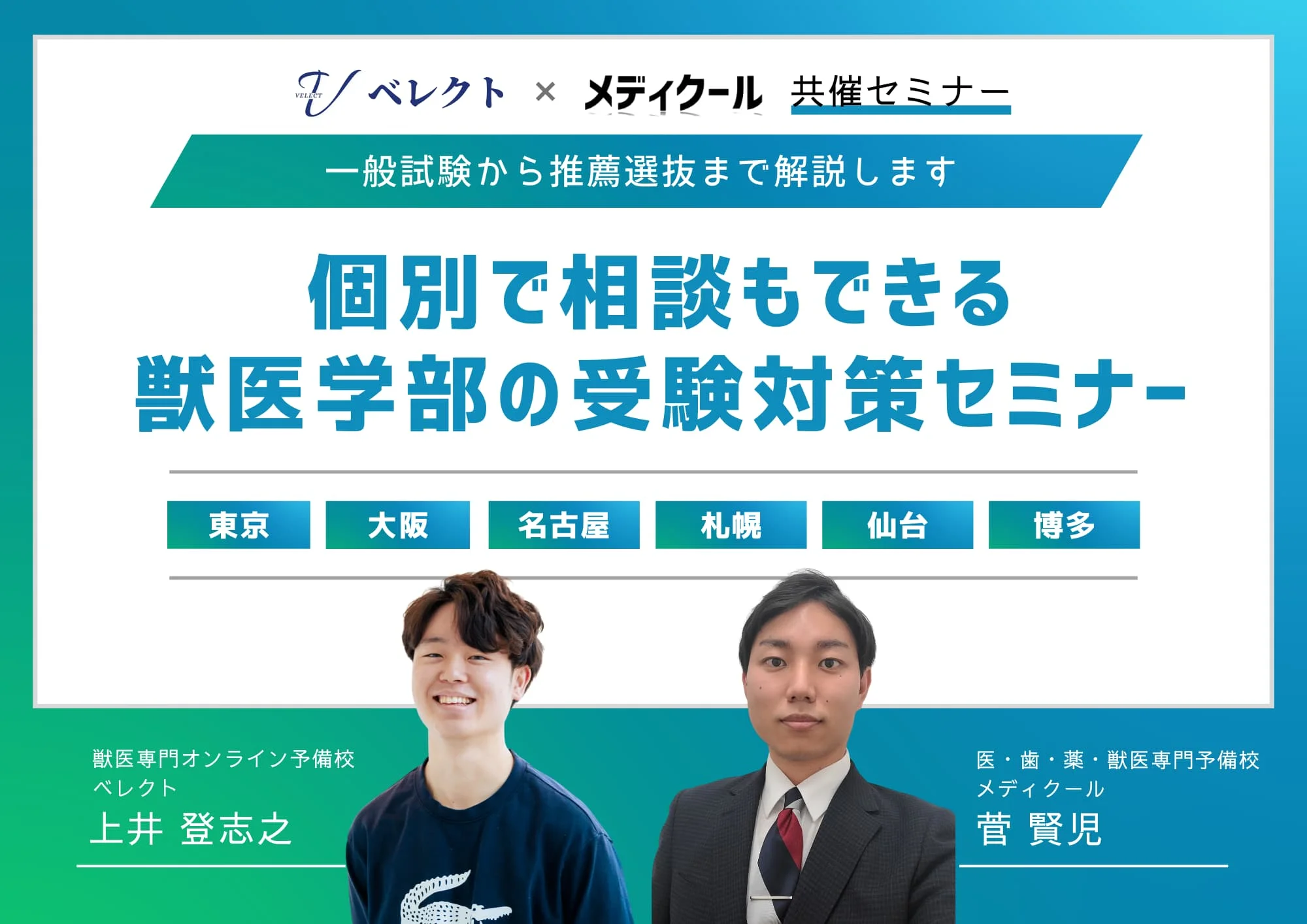 獣医専門オンライン予備校のベレクトと医・歯・薬・獣医専門予備校であるメディクールが共同で開催するセミナーです。