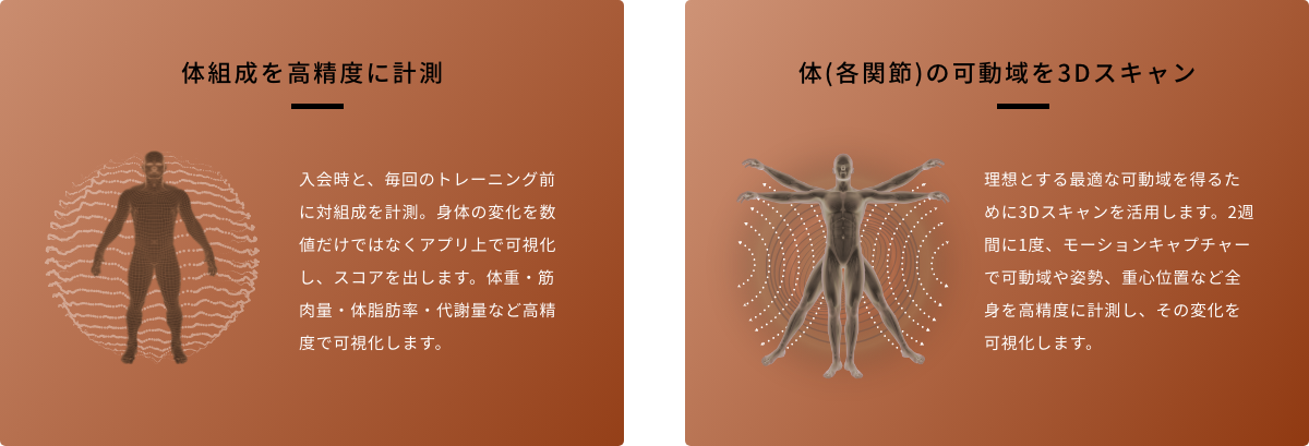 プロアスリート10名の体組成などのデータは会員の方に公開し、ご自身とどこが違うのかを比較していただけるようにする予定です。最新のマシンを導入した特別な空間は、利用人数最大6名+アスリート2名のみ。誰にも邪魔されずにご自身の身体に向き合える、凝縮された時間を持つことができます。
