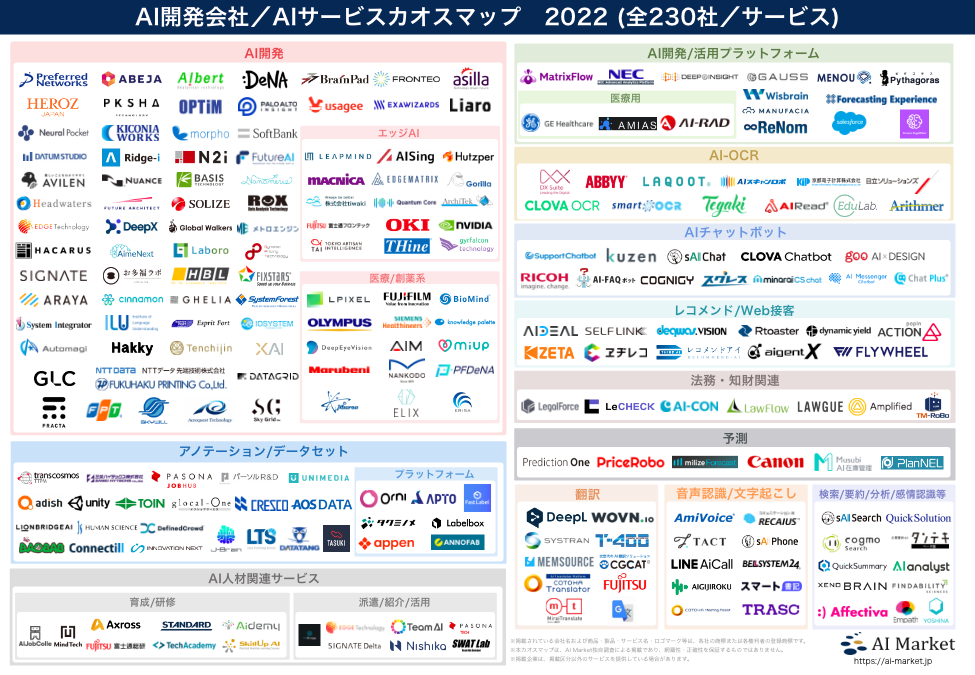 【大好評】「AI Market」がAI開発会社やAIサービスをカテゴリ別に紹介する「AI開発会社/AIサービスカオスマップ 2022」を公開!