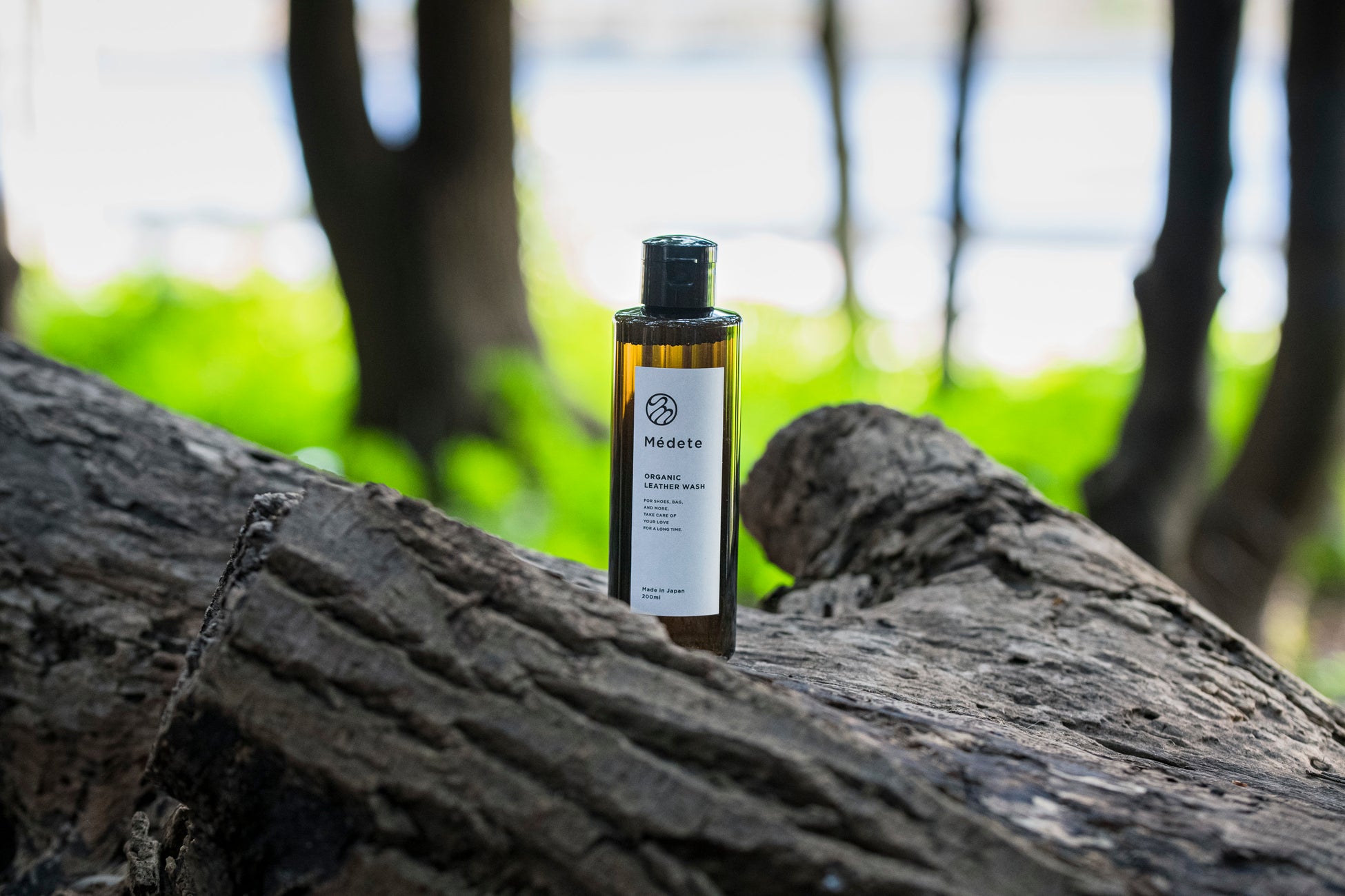 革製品を大事にされている方に是非使っていただきたい、皮革用栄養・美容液洗剤「オーガニックレザーウォッシュ」。新ブランド『Médete(メデテ)』が自信を持ってお届けします。