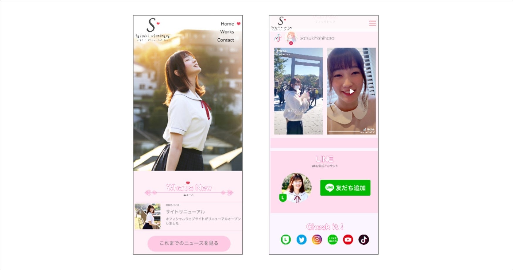 トップページからInstagram、YouTube、TikTokなど、SNSにすぐアクセスできるので、ファンの皆さんも最新情報を素早くチェックできるのではないかと思っています。