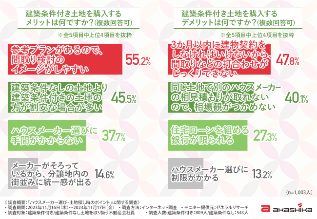 そこで、『住宅探しの専門店 いえとち相談窓口』(https://ietochi-himeji.com/)を運営する株式会社赤鹿地所は、建築条件付き土地/建築条件なし土地を取り扱う不動産会社員を対象に「ハウスメーカー選び・土地探し時のポイント」に関する調査を実施しました。