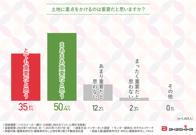 続いて、住宅を購入する際に土地に重点をかけるのは重要だと思うか伺いました。