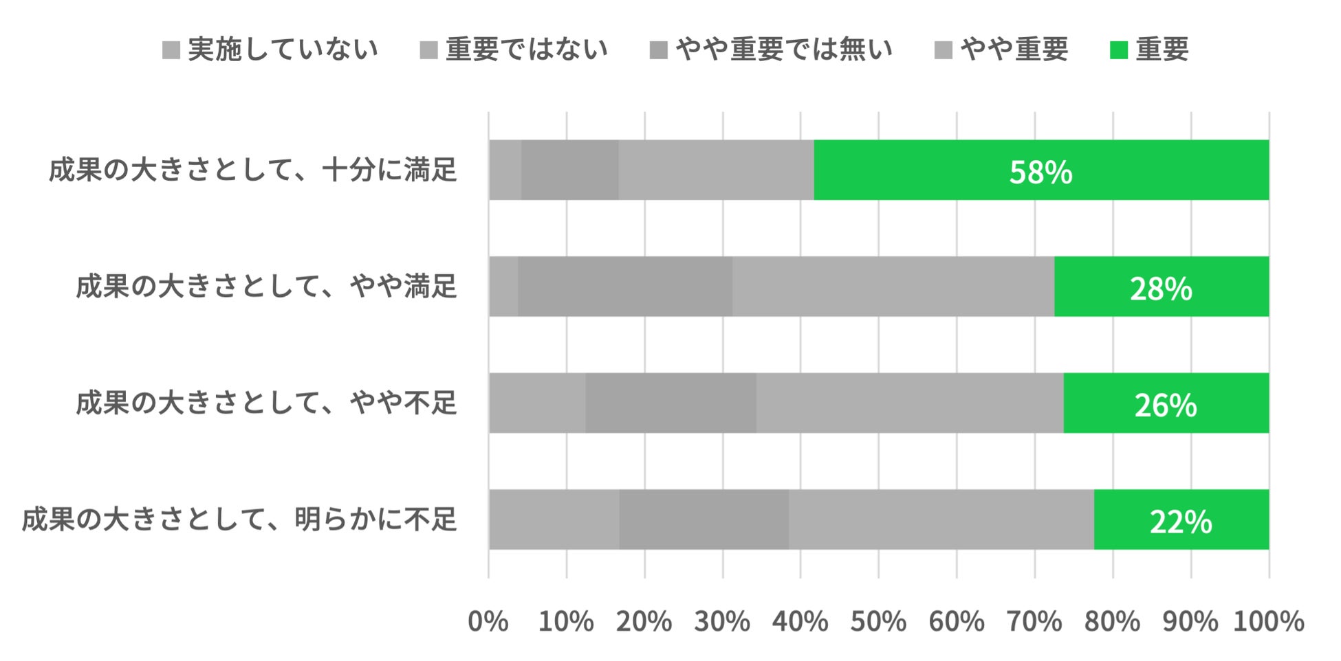 「成果の大きさに十分に満足」している担当者はわずか6%。「やや満足」を加えても27%に止まる。