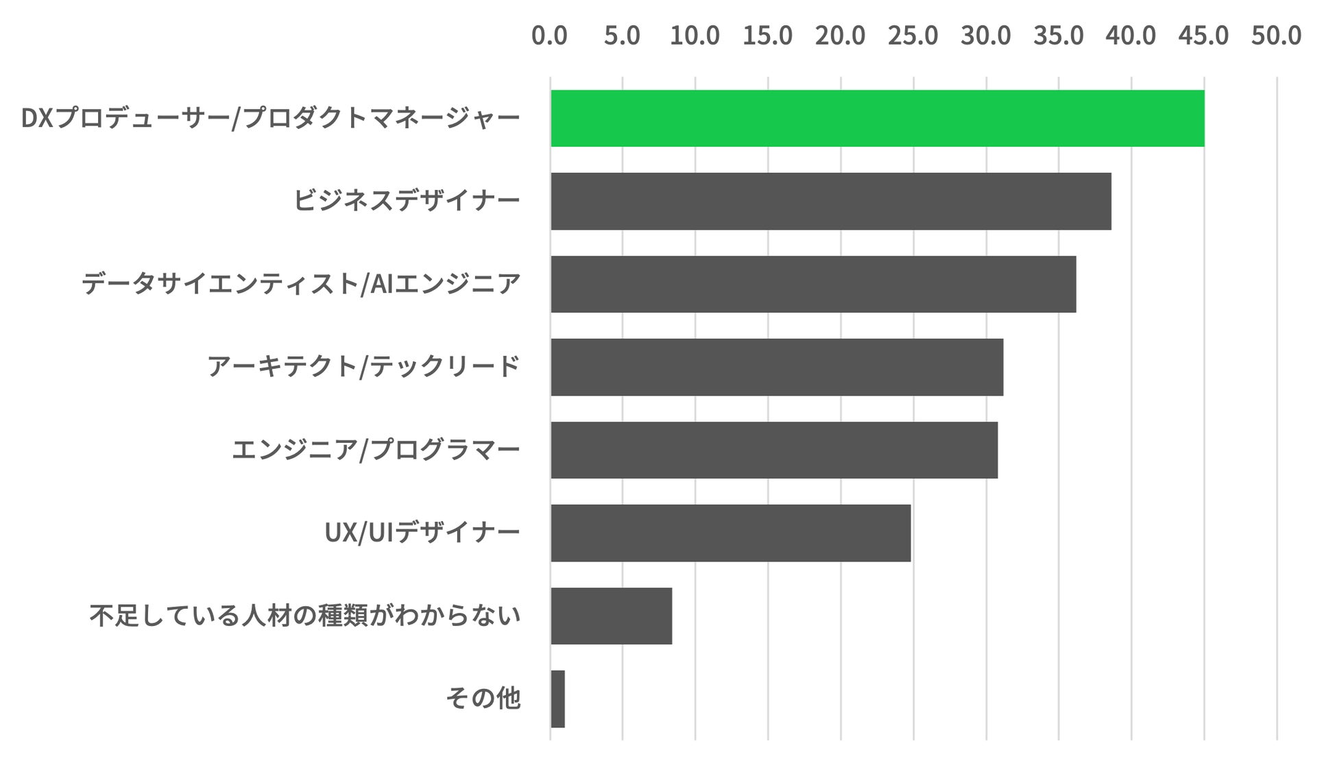 DXやプロダクト開発を推進する「DXプロデューサー/プロダクトマネージャー」人材が不足している傾向。企業に欠けているスキル・ケイパビリティを補完する存在として求められている。