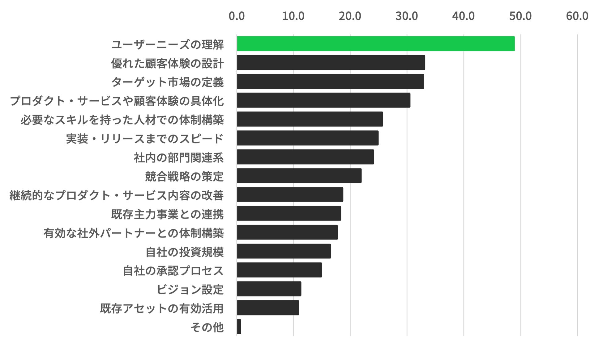 一方でユーザーニーズの理解については、課題・障壁に感じる回答者の割合が最も高い。