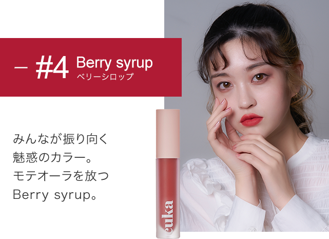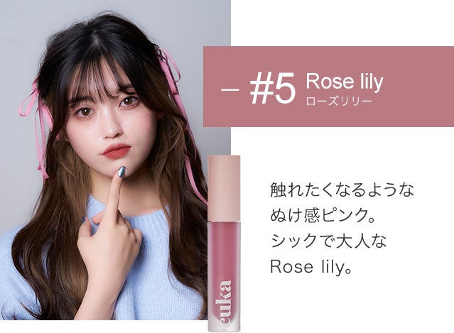 マット系が苦手な方でもお使いいただけるように保湿成分配合でしっかり感をキープ。ふんわり柔らかな唇に。
