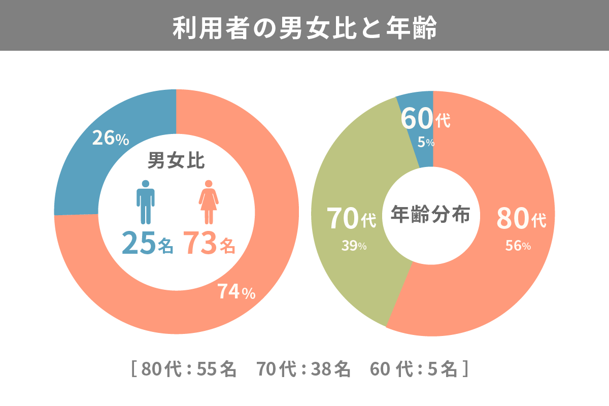 50日間の実証期間中において対象者数約130人のおよそ4分の1に当たる33人の方にご利用いただき、延べ乗車回数は98回となりました。2回以上の利用者が全体の半数以上を占めており、5回以上の利用者についても全体の20%を占めるなど、リピートする利用者が多くいることから高いニーズがあった事が覗える結果となりました。