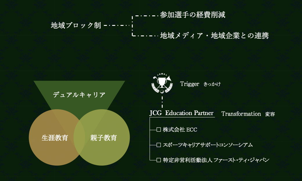 プロゴルファーとしてキャリア終了後に繋げるためにデュアルキャリア思考の啓蒙活動を行い、スポーツ界へ落とし込んでいく予定です。(各スポンサー様との連携を準備中)