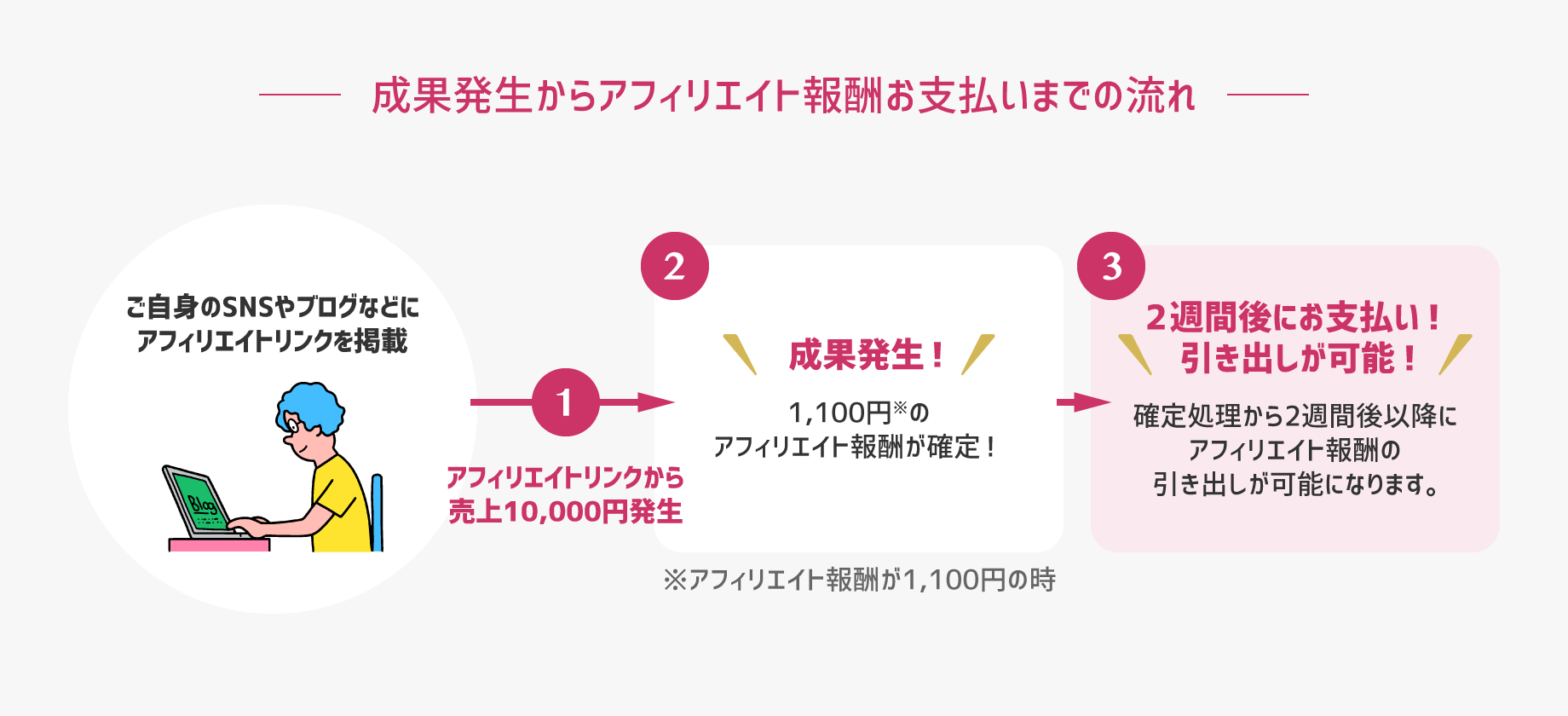 ③アフィリエイトリンクから購入してもらった場合にアフィリエイト報酬を受け取れる