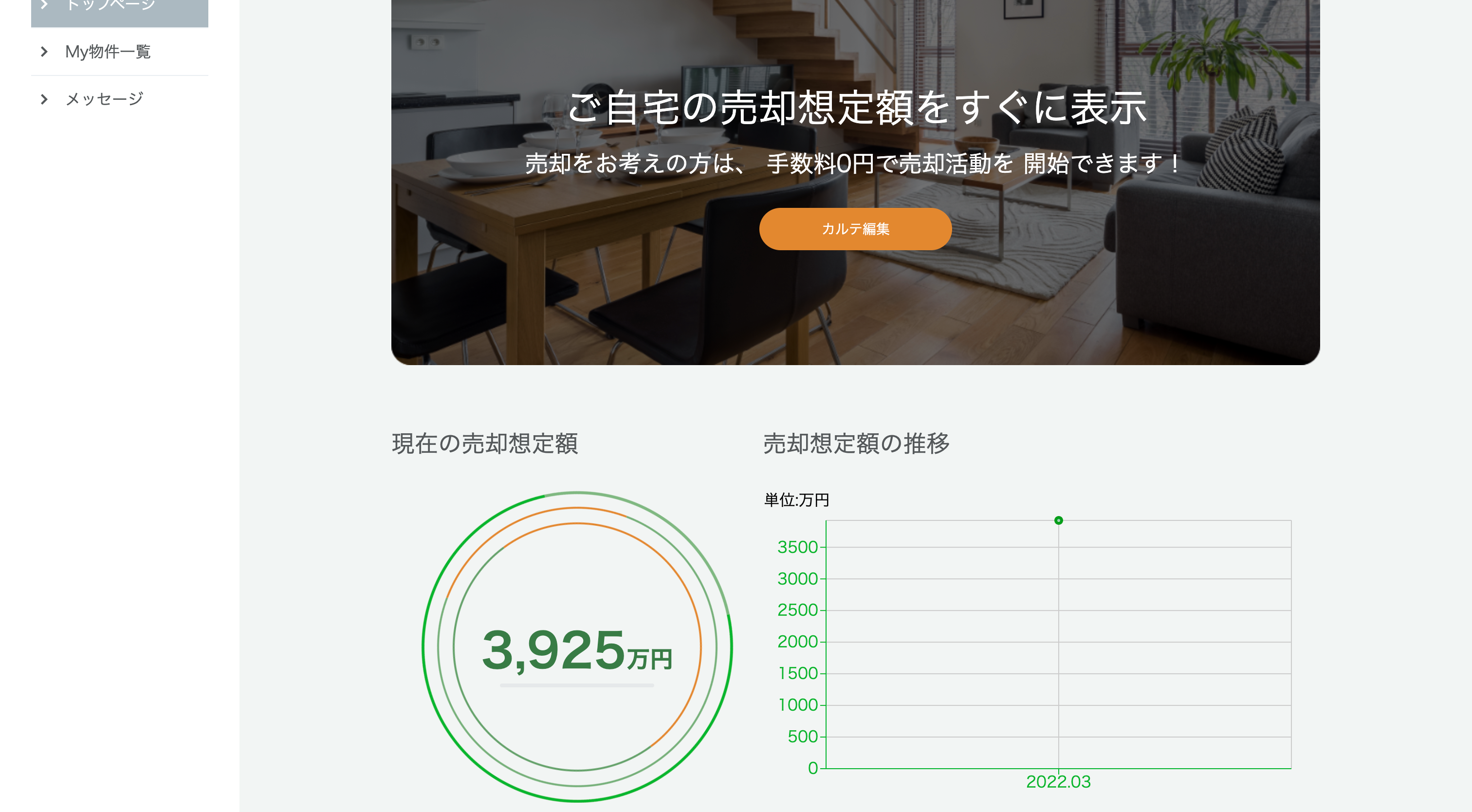 - 物件情報を入力するか「重要事項説明書」をスマホで撮影すると、実際に家を売る際の売却想定額が算出されます。