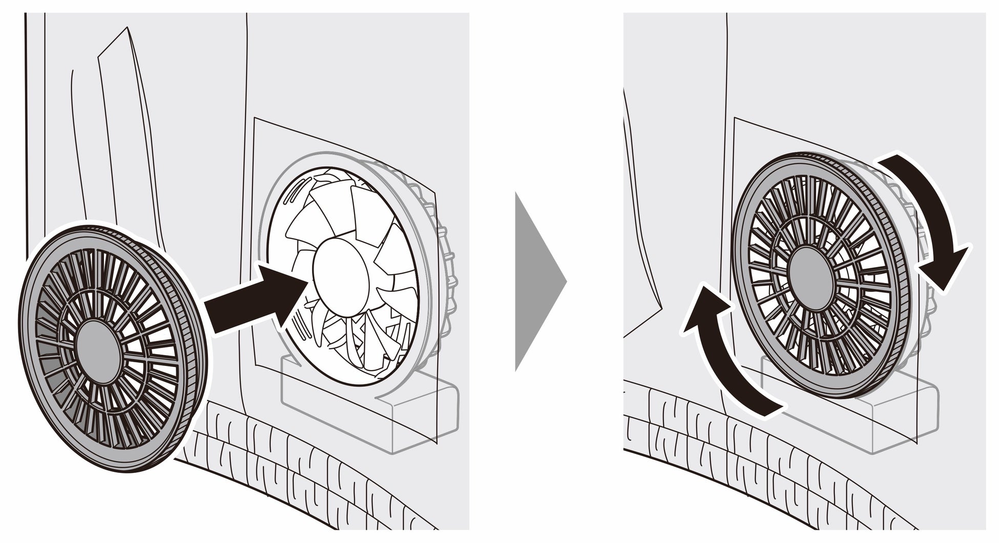 適合穴径90φ:全ての一般的なファン付き専用服に装着可能。お好みの服と組み合わせて活用!