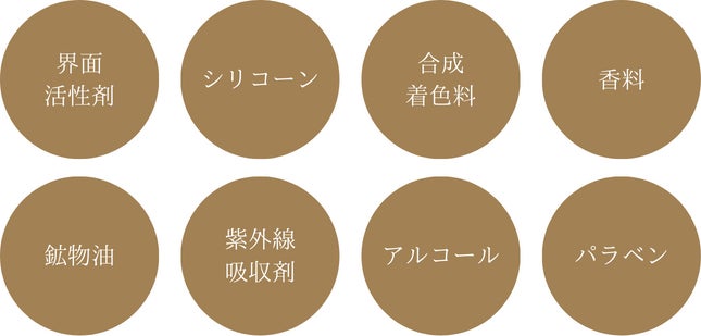 合成着色料、香料、界面活性剤、シリコーン、アルコール、パラベン、鉱物油、紫外線吸収剤などを不使用。