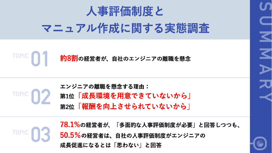 システム開発会社経営者の約8割が、エンジニアに「多面的な評価」が必要と回答 一方で、76.2%は「離職の懸念」を抱える実態