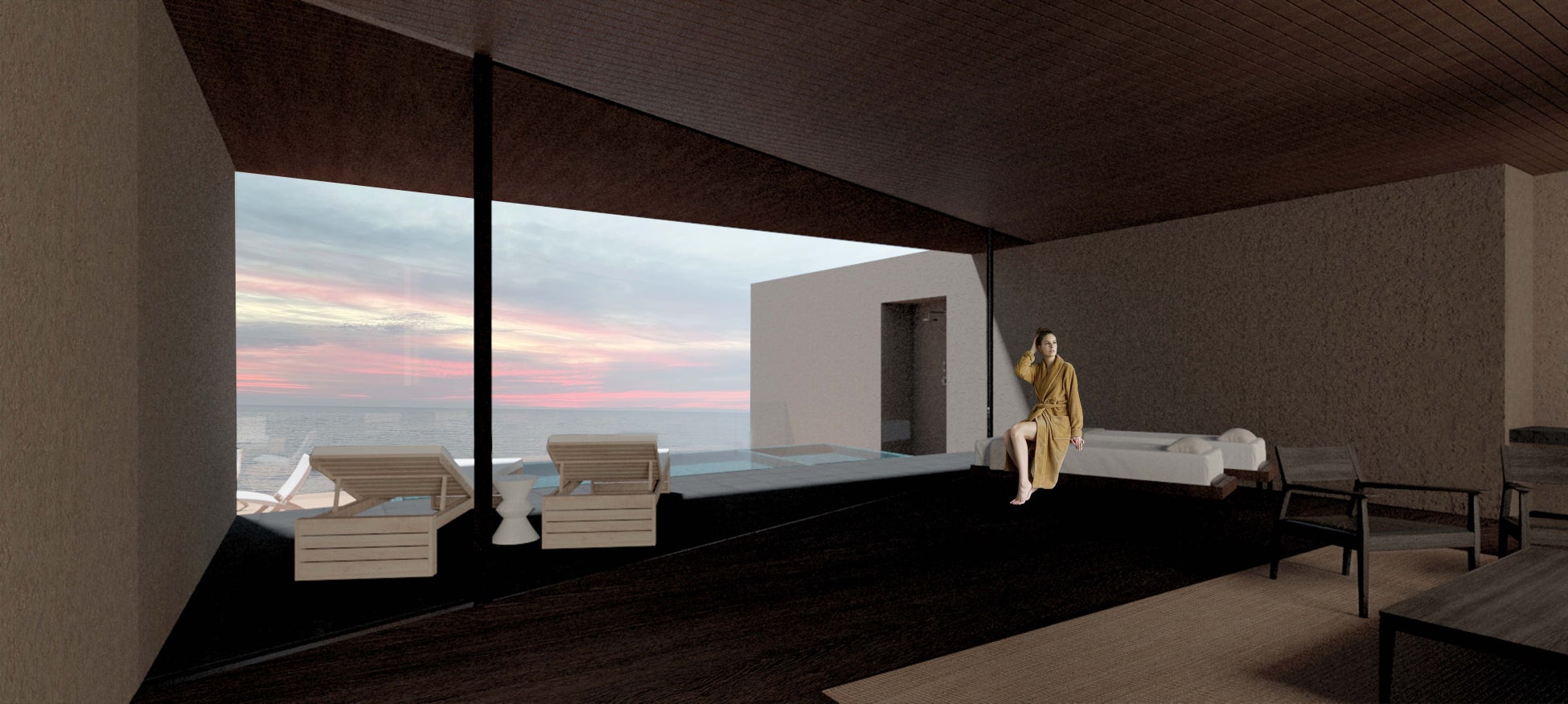 長さ32mを誇り、眼下に広がる太平洋と一体化するように新設されるインフィニティプール。春から秋まで利用可能な温水で、プールサイドにはバレルサウナやファイヤープレイスも併設されます。海外のリゾートプールのような雰囲気の中、寛ぎの時間をお過ごしいただけます。また、プールサイドには地産地消の地球に優しいサウナ作りを掲げる「ONE SAUNA」のバレルサウナを設置。国産杉を使用しており、ロウリュウにより楽しんでいただくフィンランド式サウナです。最大6人まで収容可能。※サウナは別途利用料金がかかります