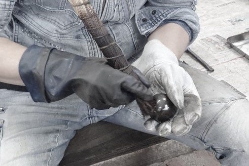 おりんそのものに青貝螺鈿を施すと音色が響かなくなってしまいます。音色の影響のない部分に螺鈿を施す工夫をすることで、「てんりん」の澄んだ心に響く音色を楽しむことが出来ます。