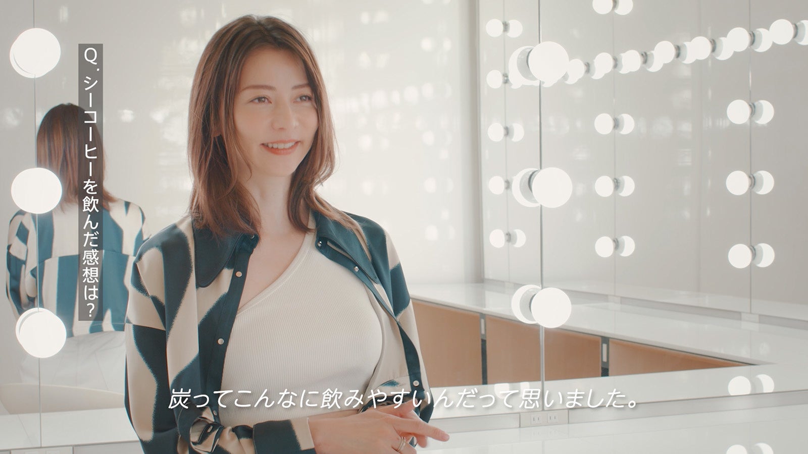 ファッション誌の撮影で、テンポ良くポーズを決めていく香里奈さん。カメラマンがシャッターを切るたびに、あらゆる世代の女性が憧れるヘルシーで美しいボディがモニターに次々と映し出されていきます。気の知れたスタッフと和やかな雰囲気で撮影は進み、撮影の合間に飲むのは、いつものコーヒーをチャコールコーヒーに置き換えた「C COFFEE」。一息つきながらも、自分の理想的なボディメイクのために努力を惜しまない、香里奈さんのありのままの日常を描きました。