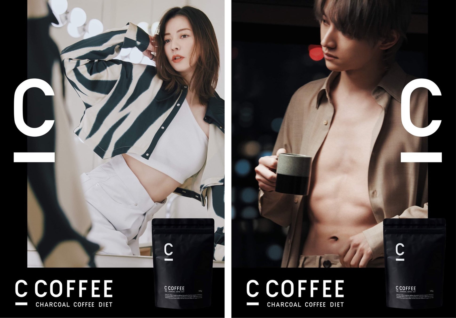 チャコールコーヒー「C COFFEE」は、芳醇な香りと旨みのブラジル産コーヒーパウダーに、クレンズ力があることで知られる国産の赤松炭など5種類の炭、そして美容と健康をサポートするMCTオイルを加えたチャコールコーヒー。毎日のコーヒーとして飲み続けやすく、無理をせずにキレイを求める女性や、引き締まった理想のカラダで自信を手に入れたい男性に向けた商品です。2年連続ダイエットコーヒー国内売上No.1獲得(2020-2021年売上金額において/2022年2月「ダイエットコーヒーに関する調査」TPCマーケティングリサーチ(株)調べ)、第34回「ヒット商品賞・話題商品賞」健康食品・サプリメント部門ヒット商品賞最優秀賞受賞(2022年2月(株)ドラッグマガジン調べ)、Amazonダイエットサプリランキング第1位獲得、楽天ダイエットコーヒーランキング第1位獲得、管理栄養士推奨第1位、日本ダイエット健康協会認証のNo.1ダイエットコーヒー。