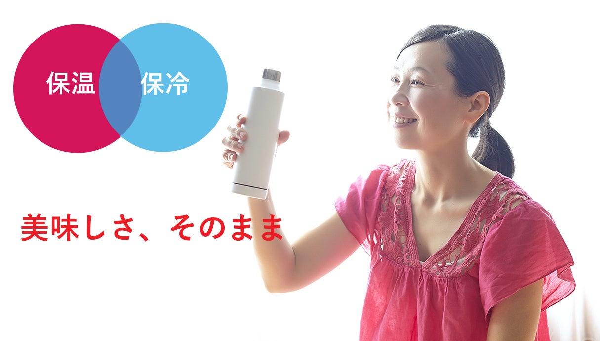 真空二重構造で、保温・保冷機能あり。日本国内で、まほうびん試験もクリア。