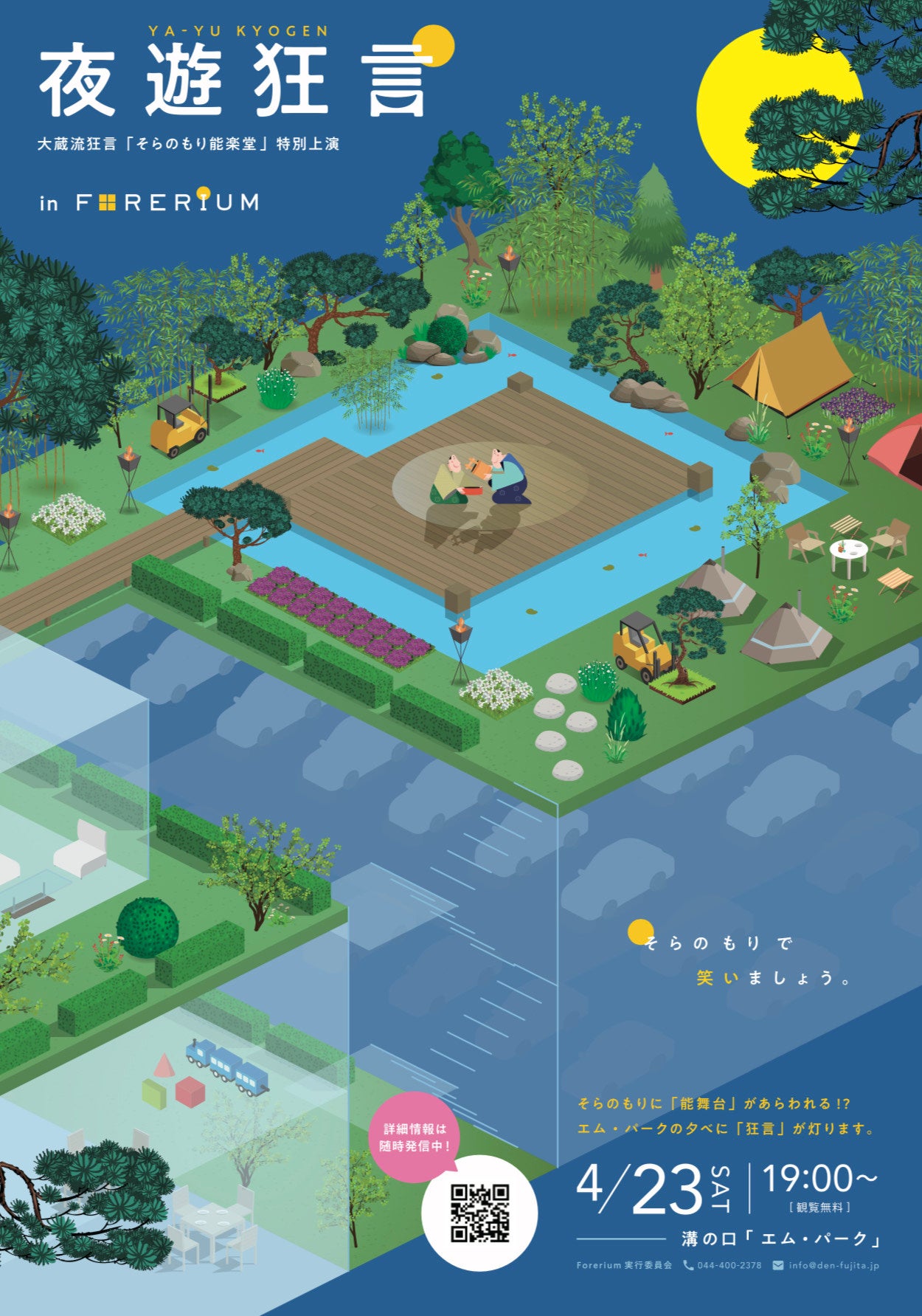 川崎市・溝の口のエム・パークにて都市緑化イベント「フォレリウム2022」を開催。会期は4月16日(土)〜24日(日)の9日間。「そらのもり」に能舞台が誕生します!