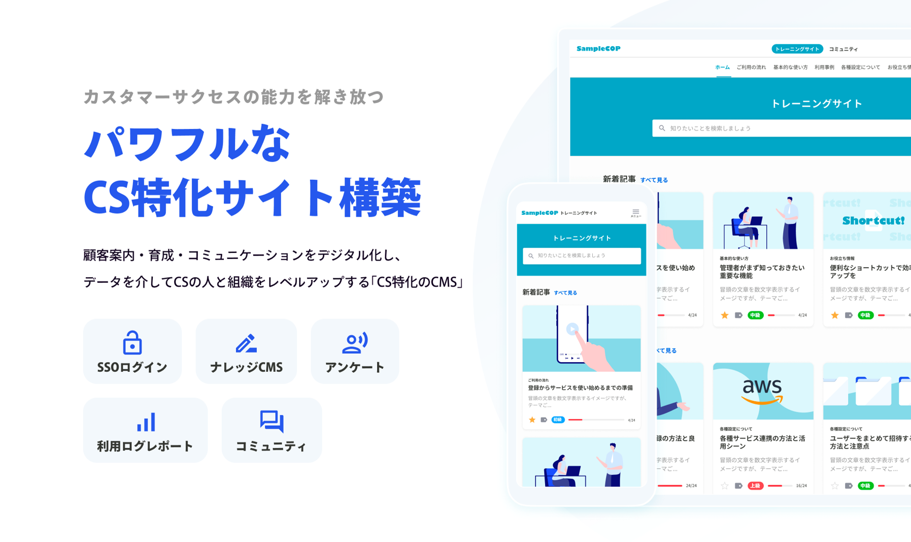 ④学習サイト/コミュニティ開設:カスタマーサクセス専用の学習サイト、コミュニティサイトの構築ができる